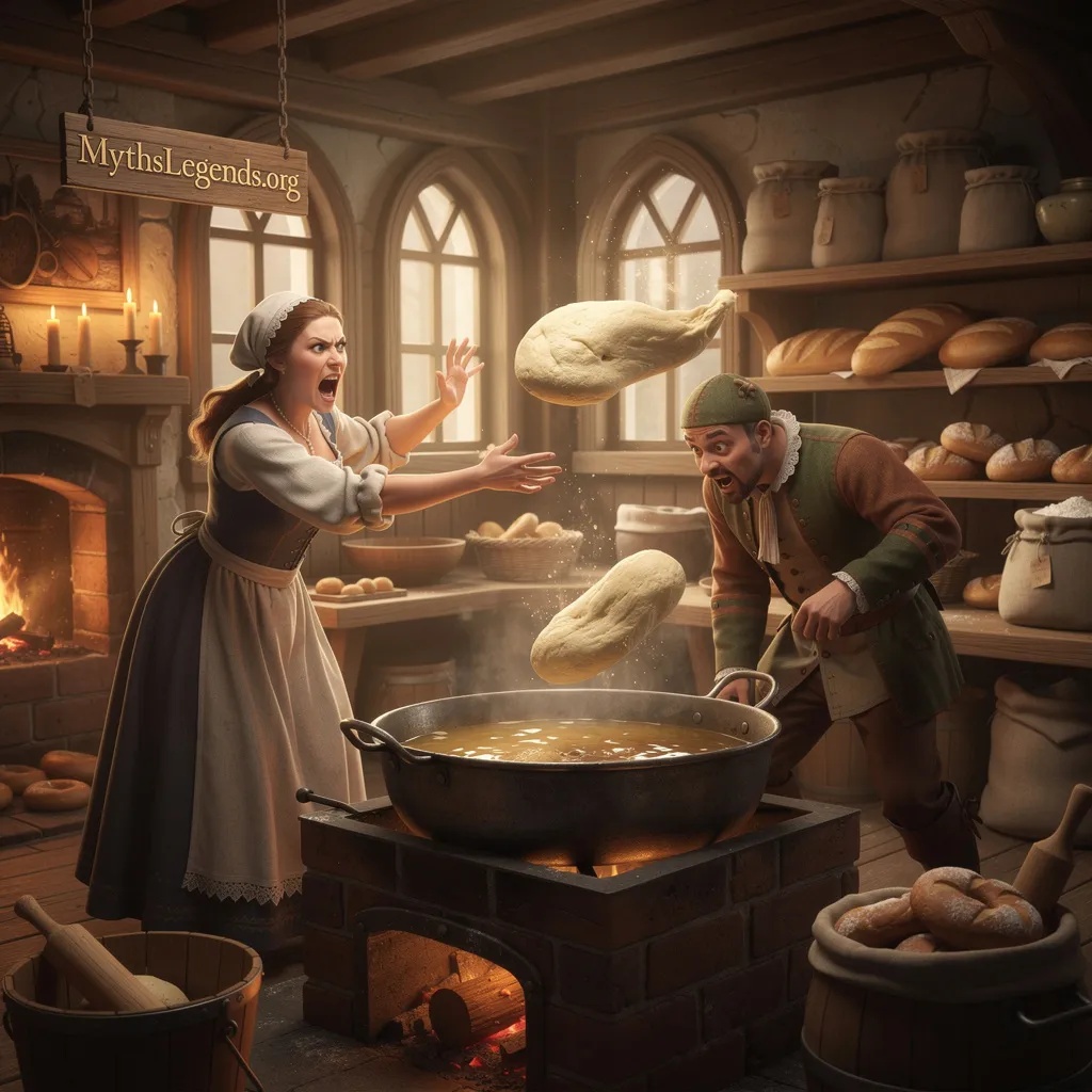 On one particularly fateful evening, a heated argument broke out between Cäcilia and her husband. The details of their dispute are not known, but the decisive moment came when Cäcilia, in a fit of rage, grabbed a lump of dough and threw it at her husband. Her husband was quick on his feet and dodged the unexpected projectile. Instead of splattering uselessly against a wall, the dough landed with a satisfying sizzle in a cauldron of boiling lard—a staple in every Viennese bakery at the time.